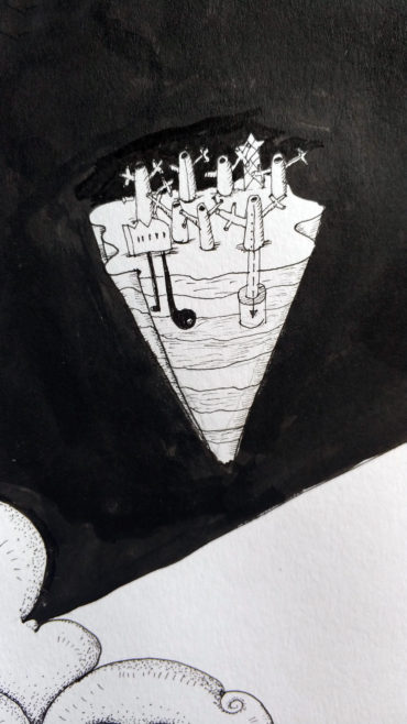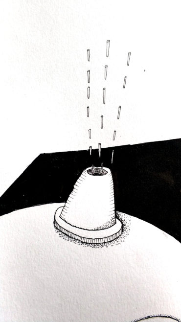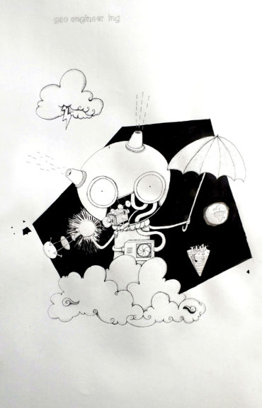 She holds an umbrella in her hand to protect the earth from outer space trash, in the other hand she holds the sun, so it’s light is deflected from earth. She uses also mirrors to manage solar radiation onto our planet.
