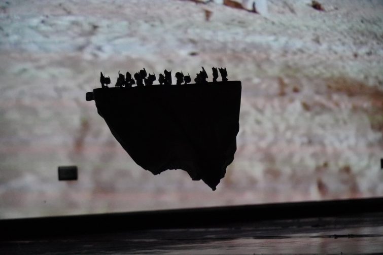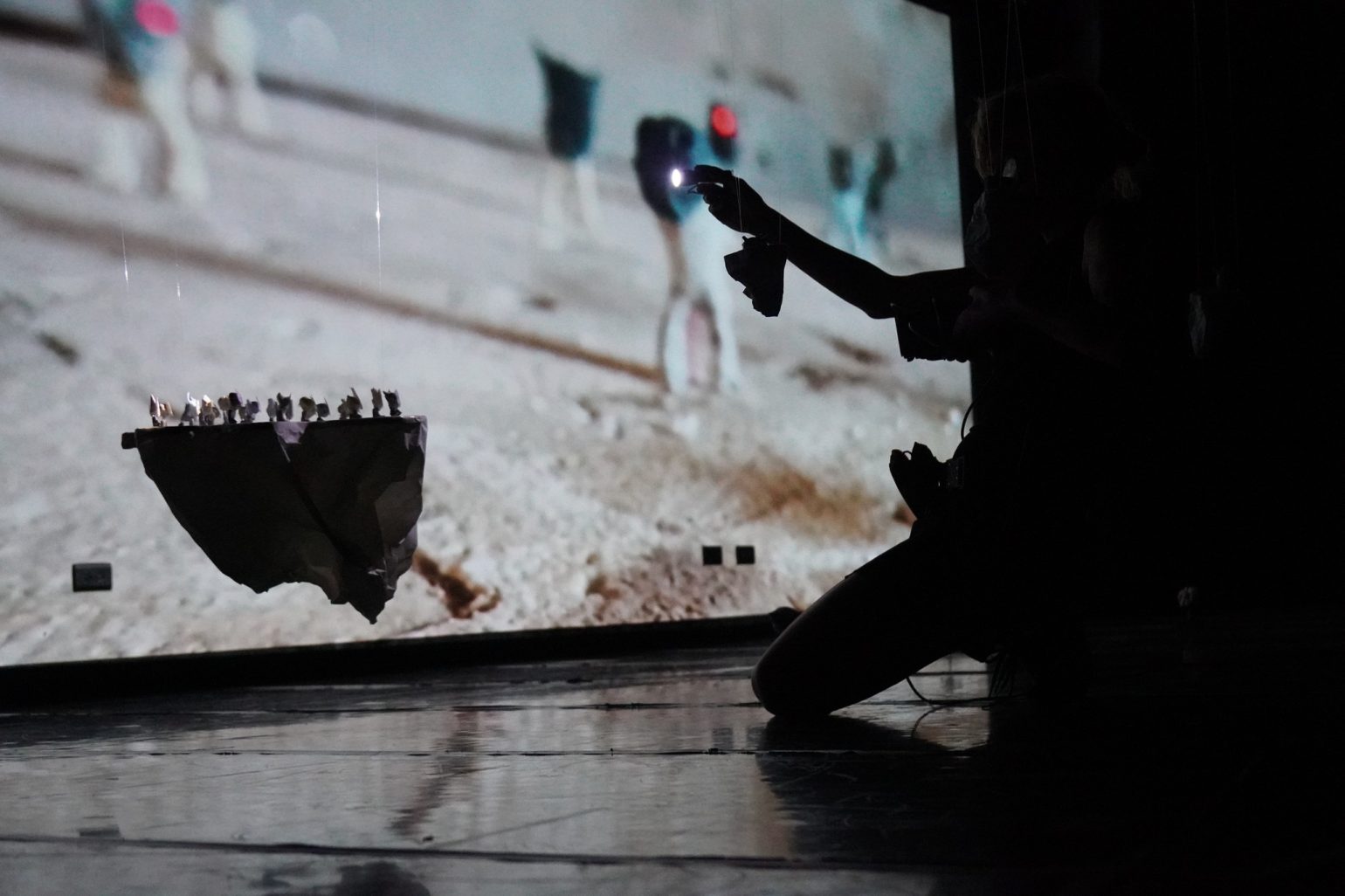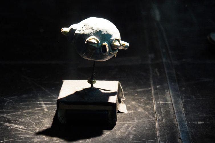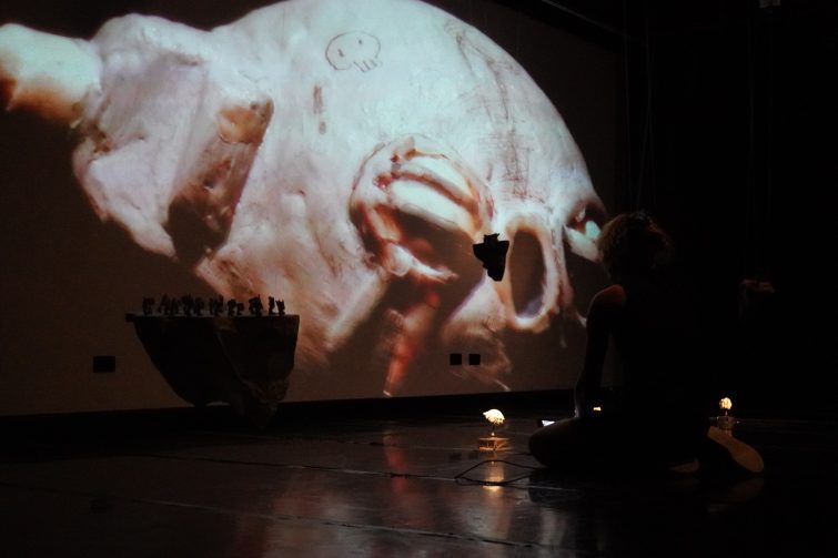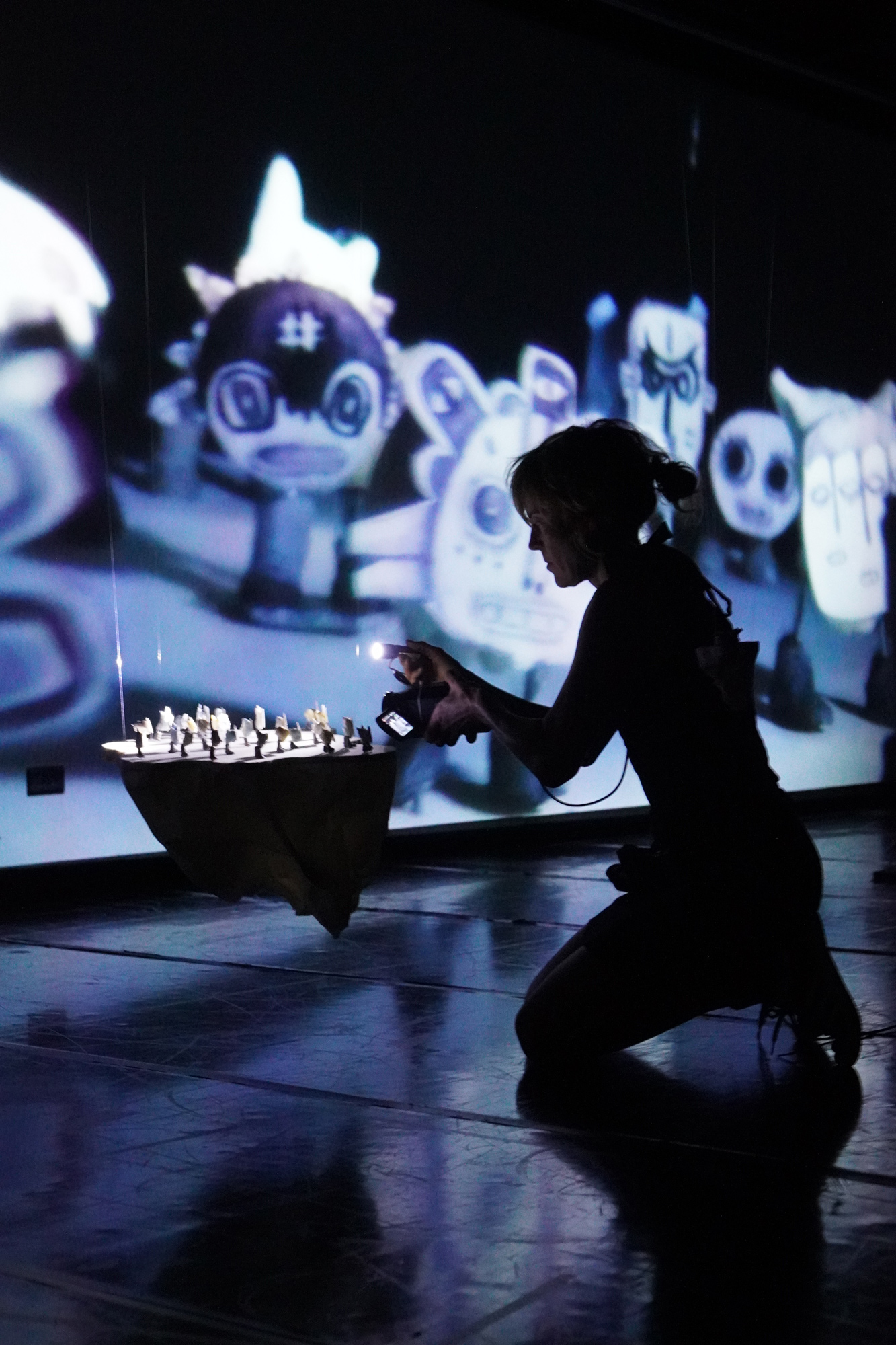 The Ghost in the Machine project is a complex, ongoing exploration, fragmented into several evolving chapters and formats. At its core, the performance imagines ceremonies of a future where humans no longer exist, leaving robots to carry forward distorted interpretations of our traditions —a persistent echo of what once was. This work manifests as a faux documentary, a video-object performance that intertwines drawings, sculptures, live video, light design, soundscapes, and special effects. Each object or artifact, carefully crafted, unveils peculiar rituals in a post-human world, offering an ironic yet oddly familiar reflection of how these remnants of our culture might be misinterpreted and reenacted by our mechanical successors.