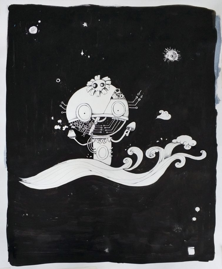 In the spring 2019 I have been working in Bolivia with Sandra de Berduccy, a Bolivian textile artist specialised in ancient Andean weaving techniques and e-textiles. With her support I have created an interactive textile, featuring a futuristic Andean goddess. Through the weaving I dived deeply into the roots of Andean culture, knowing local weavers in small villages and meaning of the symbols and symbology, world view, cosmology and rich pre-columbian culture.